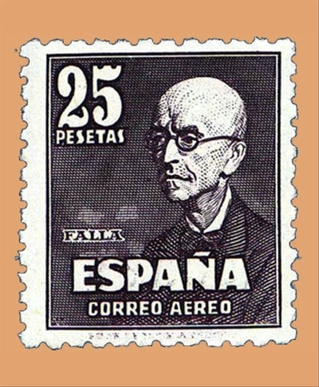 Sello emitido por la Real Fábrica de Moneda y Timbre el 1 de diciembre de 1947. Forma parte de la serie Falla y Zuloaga. El valor del mismo era de 25 pesetas.