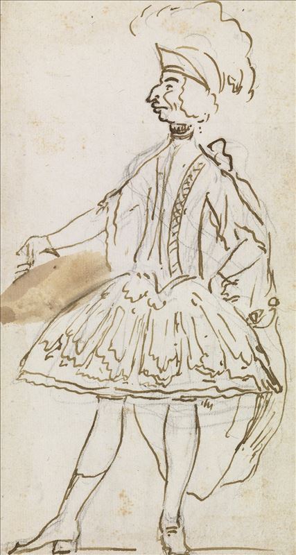 Caffarelli estuvo en Madrid en 1739 y 1755. En la caricatura aparece de perfil derecho, en actitud de señalar con su brazo y manos derechos a algún lugar detrás de él, mientras la mano izquierda ...