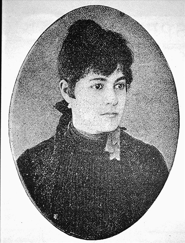 Retrato de Clotilde Cerdá Bosch (1862 - 1926). Se trata de una imagen en blanco y negro.