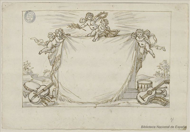Forma parte de cuatro cartones para tapices, de igual tamaño, con destino a las sobrepuertas de la "pieza de conversación" del rey Carlos III en el Palacio Real, Madrid, que representan las alegorías....