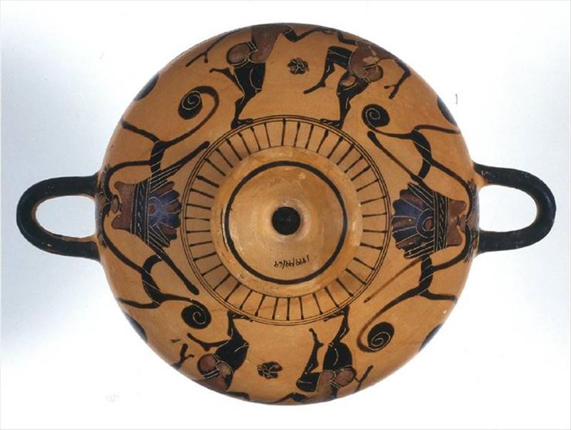 La decoración exterior muestra a dos parejas de comastas danzantes, cuyos movimientos (en extremidades superiores e inferiores) son complementarios; ambas escenas son análogas, casi idénticas entre ...