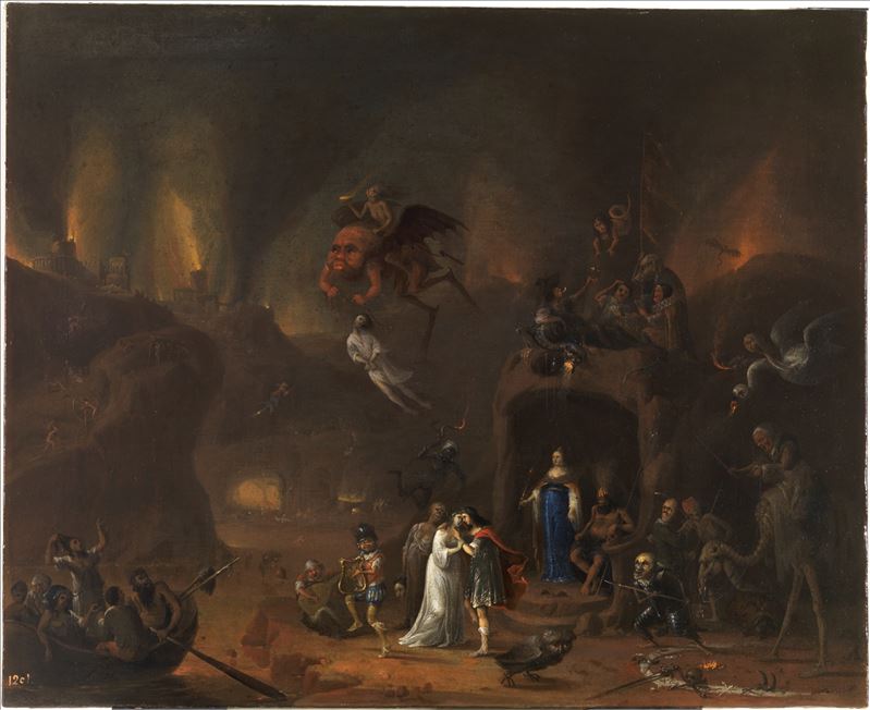 Se trata de una escena con figuras grotescas que narra el momento en que Orfeo se reencuentra con Eurídice en los Infiernos tras su muerte. Están representados en el centro de la imagen. Detrás de ...