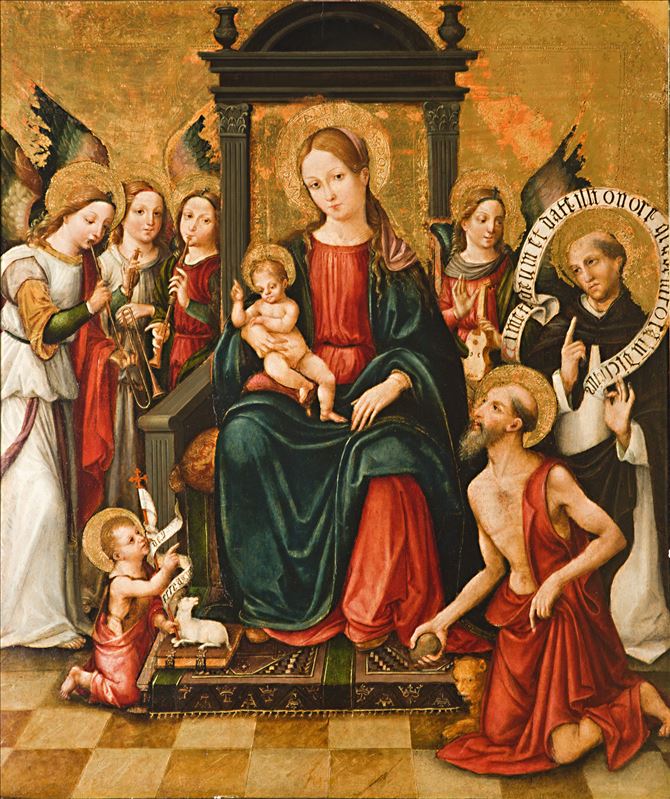 La pintura forma parte de la escuela manierista sevillana de Juan de Uceda y Alonso Vázquez. Consta de dos partes bien divididas, una terrenal y una celestial, una realizada por cada pintor. El tema ...