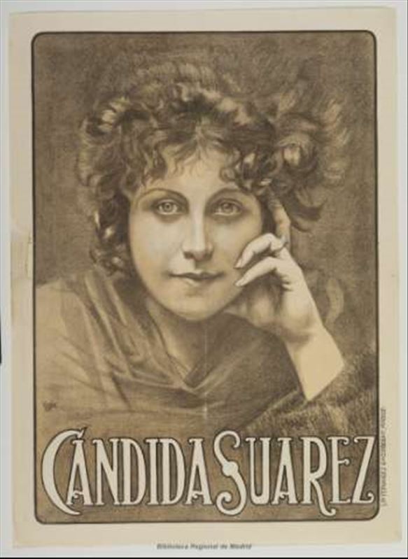 Cartel cromolitografiado de la vedette Reyes Castizo sobre litografía de César Fernández Ardavín (Vinfer) con firma del autor en el margen derecho. La imagen muestra un retrato en busto con el rostro ...