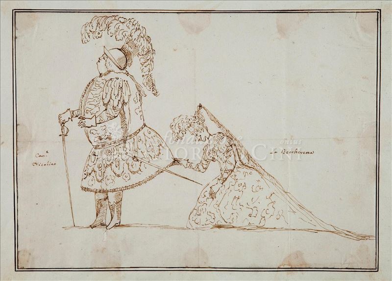Boceto de Orfeo correspondiente a una pechina. Se encuentra semidesnudo con una corona de laurel y la lira característica en su mano izquierda.