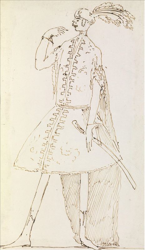 Aparece representada una Biwa sobre un asiento. Se trata de un Laúd Oriental con cuatro cuerdas y cuatro trastes móviles. El clavijero se encuentra situado hacia atrás. Aparenta ser de marfil con ...