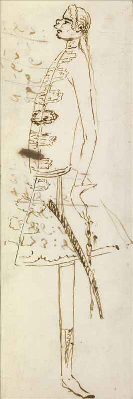 Carlo Broschi estuvo en España entre 1737 y 1759. Esta caricatura del cantante de ópera es una versión parcial de otra caricatura de Farinelli. En esta no se representan el brazo ni la pierna ...