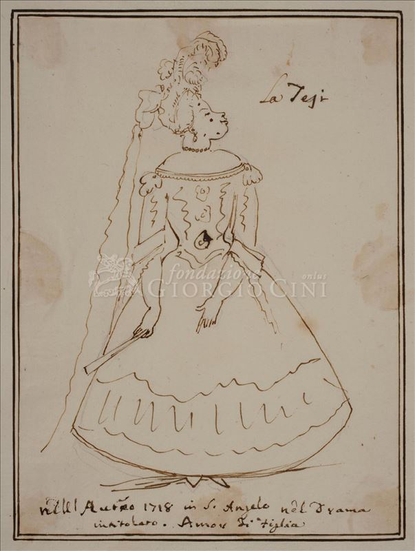 La composición presenta a una mujer joven, de medio cuerpo ligeramente torcida hacia su lado izquierdo, sosteniendo un libro de música y mirándonos directamente. Luce un generoso escote en un vestido ...