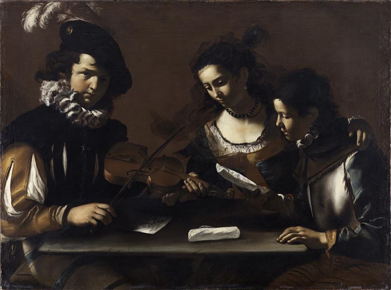 Esta pintura fue realizada por Mattia Preti en su etapa juvenil. En la escena se representan tres figuras sentadas sobre un fondo oscuro que destacan debido a la incidencia de la luz en ellos. Uno de ...