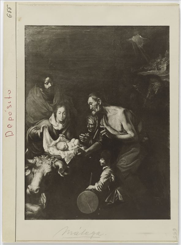 Esta fotografía hecha por Joaquín Ruiz Vernacci muestra la pintura realizada por Antonio del Castillo Saavedra sobre la Adoración de los pastores. A la izquierda de la composición se encuentran San ...