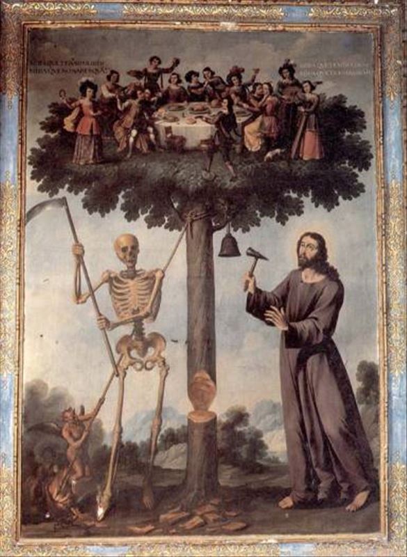 La pintura se encuentra en la Capilla de la Concepción de la Catedral de Segovia. En ella aparece la Muerte a punto de talar el árbol ayudada por un demonio tirando de una cuerda y en cuya copa un ...