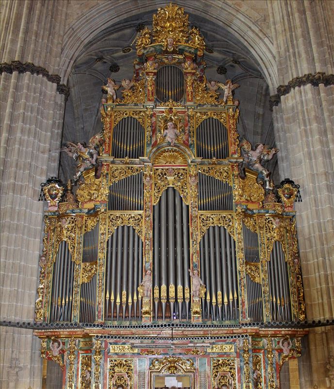 La escultura del Rey David tocando el arpa forma parte del conjunto escultórico de la Capilla Dorada de la Catedral Nueva de Salamanca. Ésta se encuentra en el muro sur siendo la primera escultura de ...