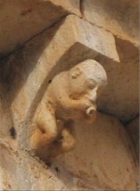 La escena musical reside en uno de los personajes esculpidos sobre un canecillo de la ermita. Aunque se encuentra deteriorado por el paso de los años se puede apreciar que con sus manos sostiene un ...