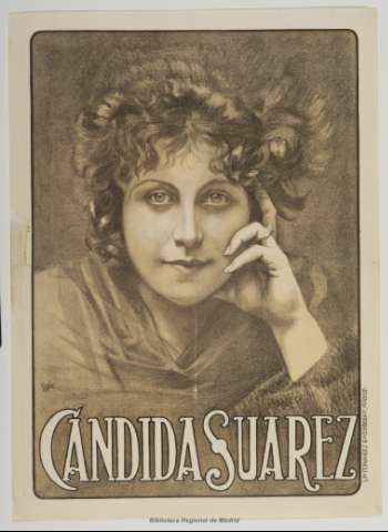 Retrato de la actriz Cándida Suárez, nacida en San Sebastián e hija del barítono Leopoldo Suárez y hermana de Blanquita. Introducida en la música por su padre y el maestro José Vivó destacándose rápidamente en el género chico y en la opereta vienesa como tiple cómica. Figura principal de la Compañía de Casimiro Ortas [El Arte de el teatro (Madrid. 1906). 15/10/1906, página 20].
