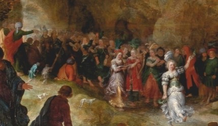 Junto a la mujer del arpa aparece otra tocando una flauta travesera. La posición de las manos es verosímil.