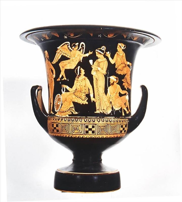 Sobre el extremo inferior derecho de la foto está Orfeo con sus brazos desplegados hacia el cielo en busca de su amada Eurídice. Seguramente se trata de la representación de la muerte de Eurídice o ...