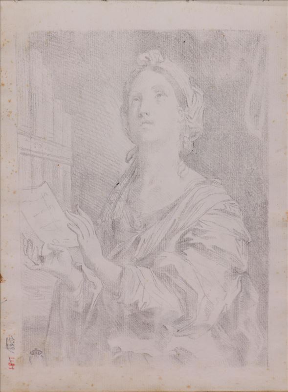 Se trata de un estudio de Santa Cecilia llevado a cabo por un pintor anónimo italiano. En él se representa a la santa sosteniendo lo que parece ser una partitura entre sus manos, mientras, como es ...
