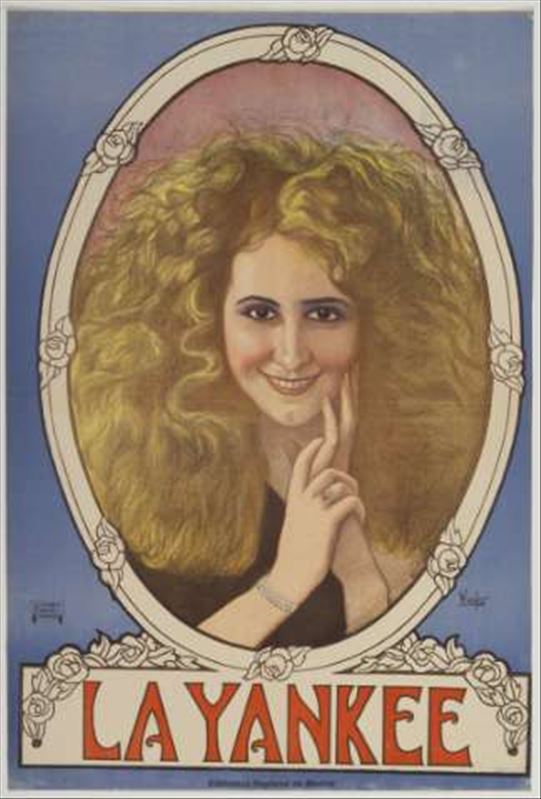 Cartel cromolitografiado de la vedette Reyes Castizo sobre litografía de César Fernández Ardavín (Vinfer) con firma del autor en el margen derecho. La imagen muestra un retrato en busto con el rostro ...